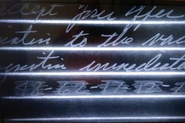 Questioned documents can be examined to determine the relative age of ink and to read indentations that may reveal writings that are invisible to the unaided eye. Rosemarie is also certified in the analysis and comparison of latent fingerprints and can retrieve fingerprints from paper utilizing high intensity light, chemical and powder techniques. Our laboratory can process questioned documents for DNA analysis.